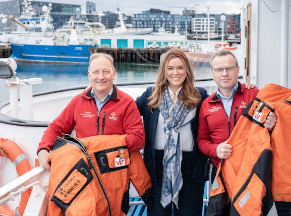 VÍS gaf Slysavarnaskóla sjómanna tíu flotvinnubúninga.